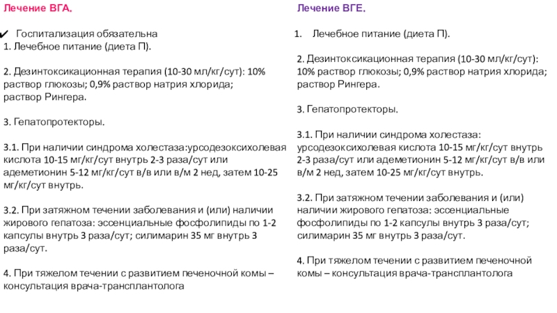 3.1. При наличии синдрома холестаза: урсодезоксихолевая кислота 10-15 мг/кг/сут внутрь 2-3 раза/сут или адеметионин 5-12 мг/кг/сут в/в или в/м 2 нед, затем 10-25 мг/кг/сут внутрь.