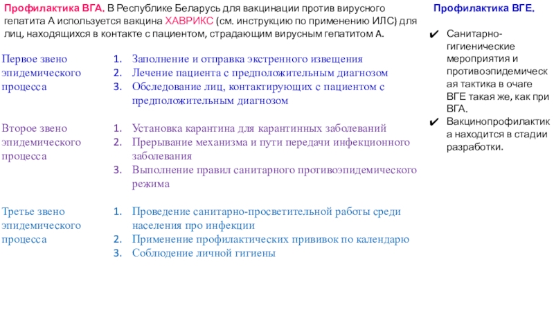 Санитарно-гигиенические мероприятия и противоэпидемическая тактика в очаге ВГЕ такая же, как при ВГА.