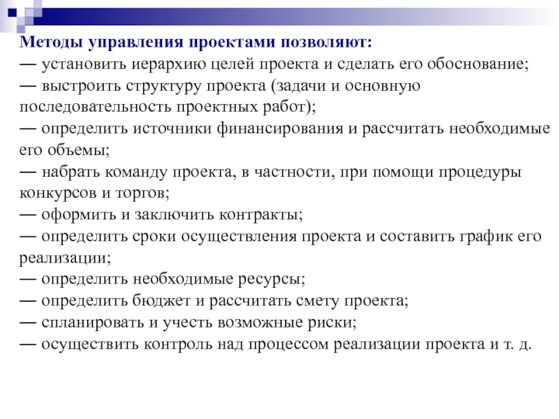 Слайд 3Управление проектами – это методика, требующая реализации как специализированных, так