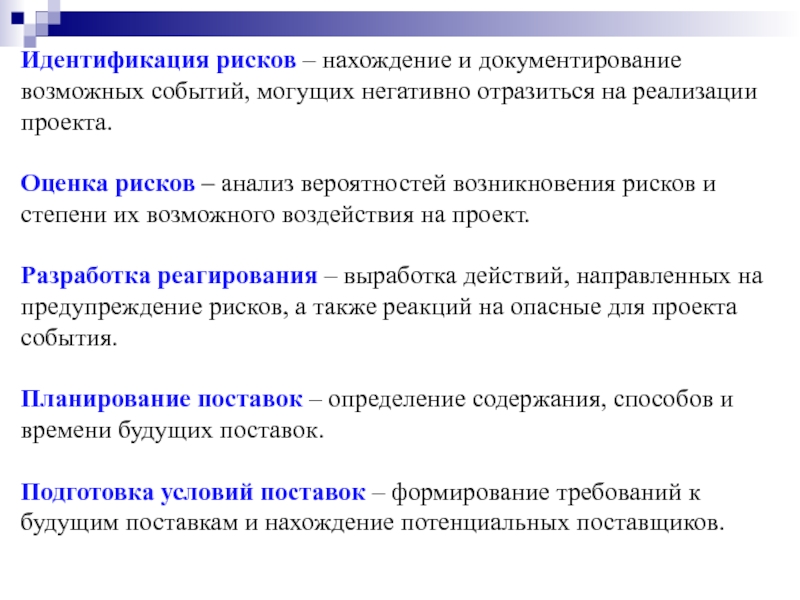 предупреждение рисков, а также реакций на опасные для проекта события.