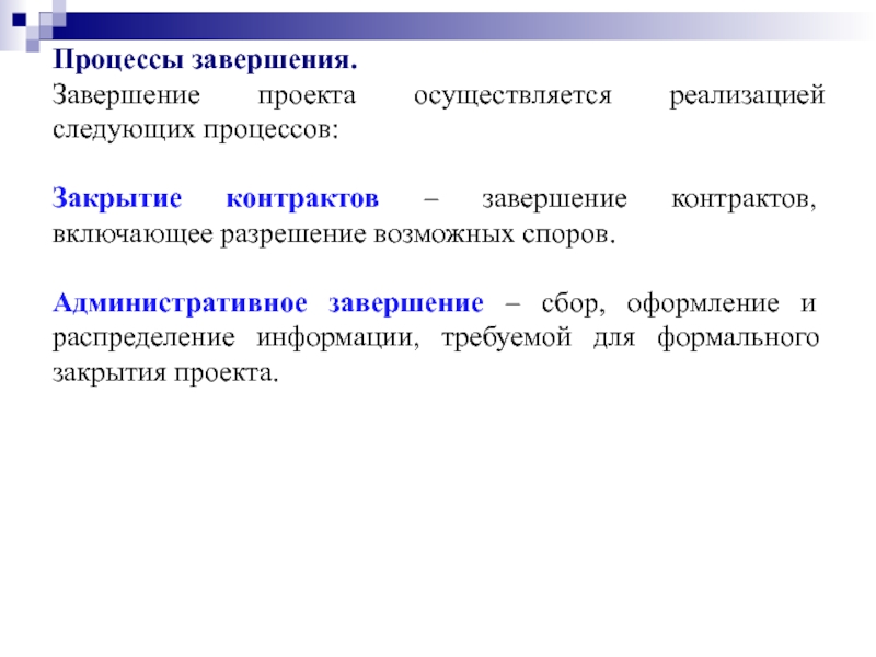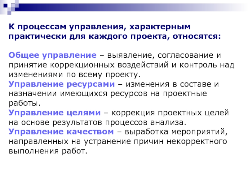 Слайд 27К процессам управления, характерным практически для каждого проекта, относятся: