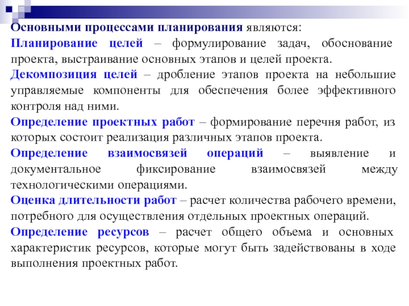 Слайд 15Наряду с указанными основными процессами планирования существует также несколько вспомогательных
