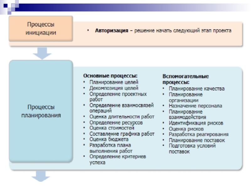 – процессы, направленные на принятие решения о начале реализации проекта;