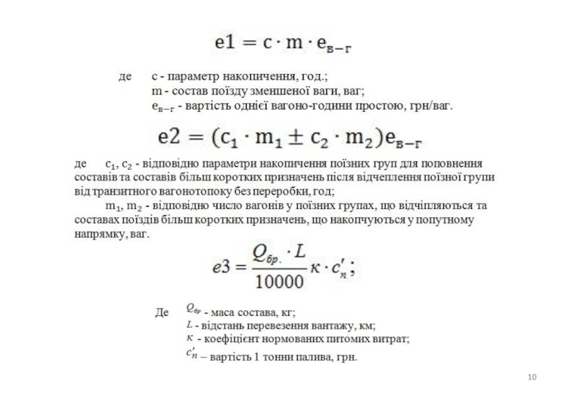 Доцільність формування поїздів окремих призначень при збільшенні транзитностіДе	е1 – витрати від накопичення составів зменшеної ваги, грн;	е2 –