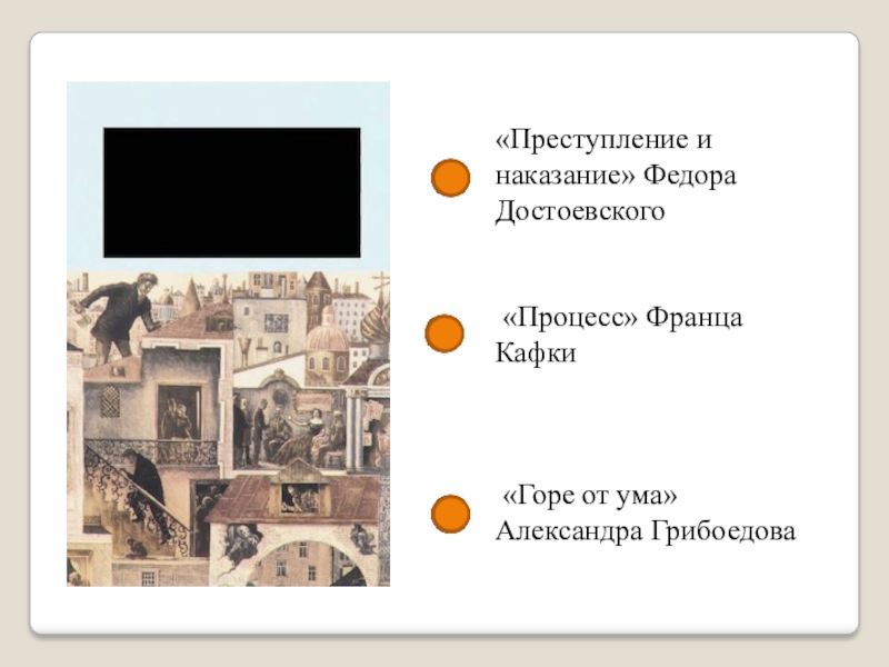 «Преступление и наказание» Федора Достоевского «Процесс» Франца Кафки «Горе от ума» Александра Грибоедова