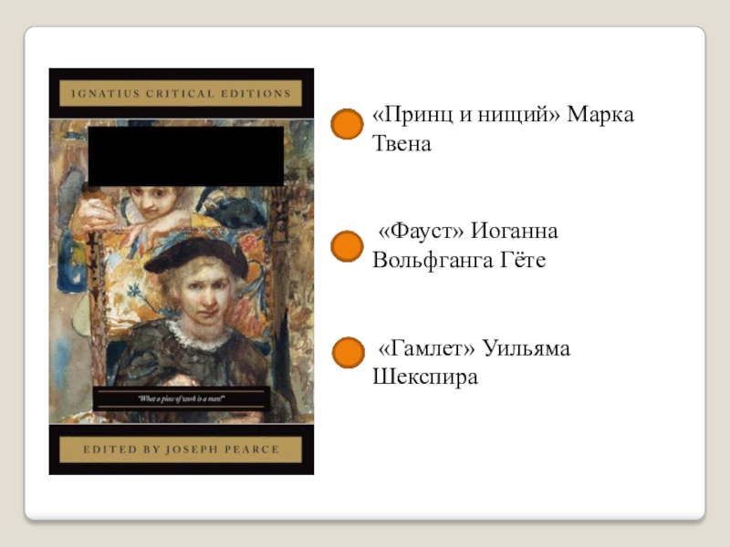 «Принц и нищий» Марка Твена «Фауст» Иоганна Вольфганга Гёте «Гамлет» Уильяма Шекспира
