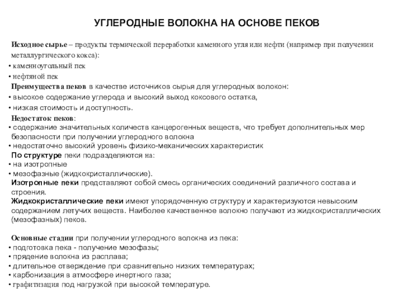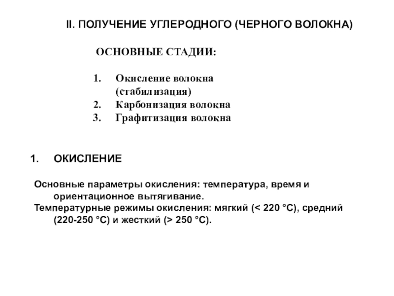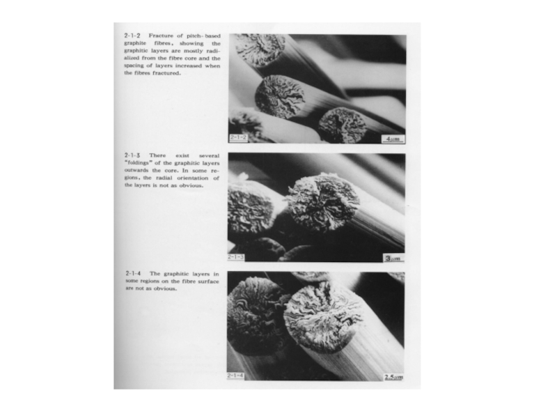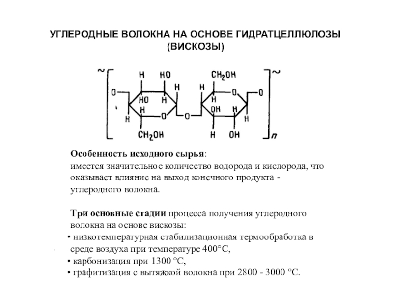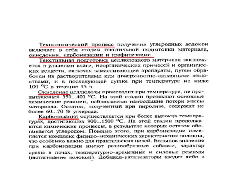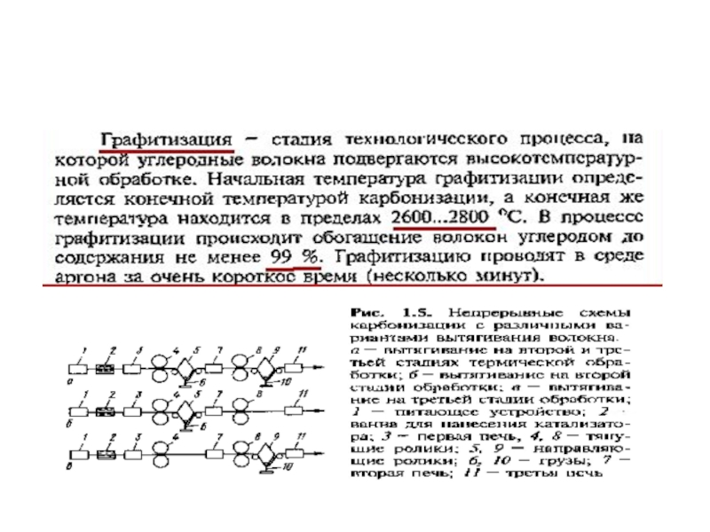 при температуре 400-1200 С формируются основные элементы структуры углеродного волокна – образование и рост графитовых плоскостей;