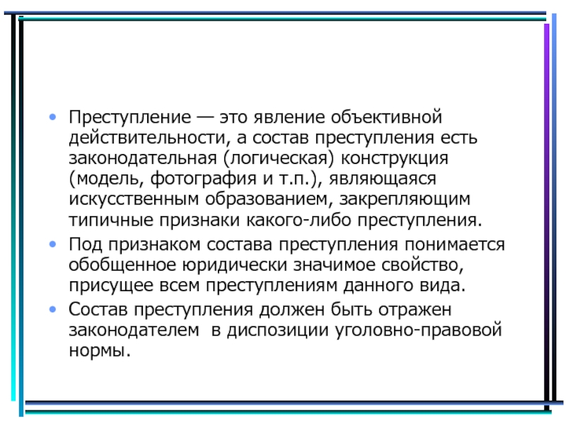 Преступление — это явление объективной действительности, а состав преступления есть законодательная (логическая)