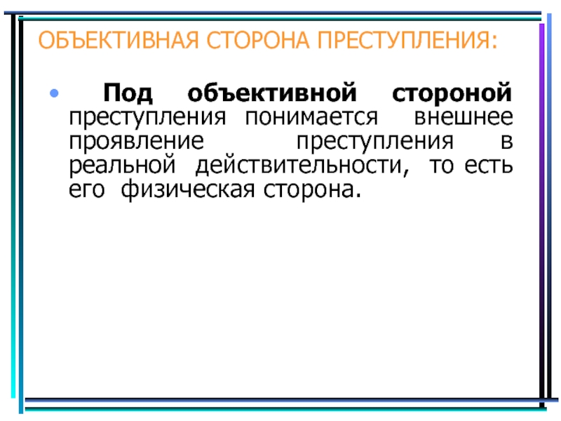 Слайд 7ОБЪЕКТИВНАЯ СТОРОНА ПРЕСТУПЛЕНИЯ: