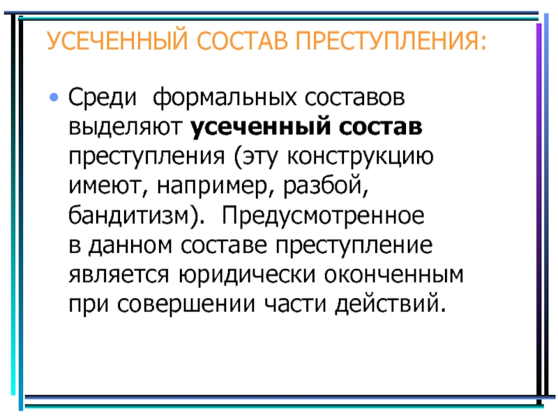 Слайд 18УСЕЧЕННЫЙ СОСТАВ ПРЕСТУПЛЕНИЯ: