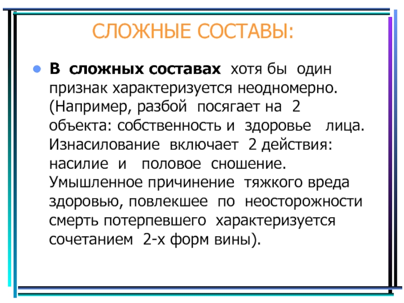 В сложных составах хотя бы один признак характеризуется неодномерно.