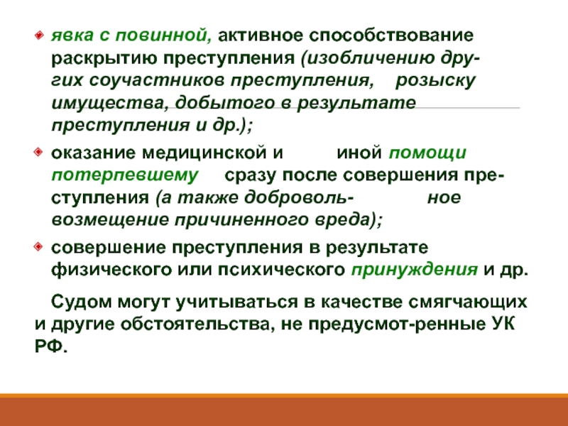 Слайд 38явка с повинной, активное способствование раскрытию преступления (изобличению дру-