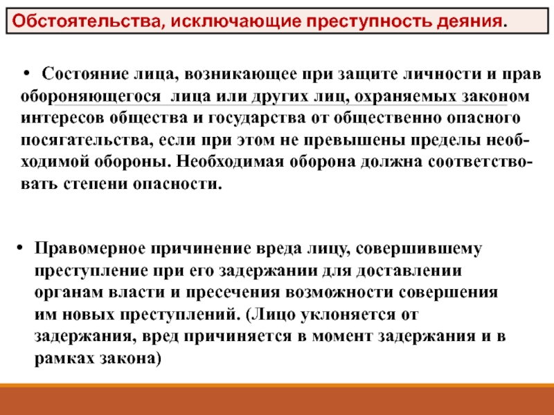 Слайд 40Обстоятельства, исключающие преступность деяния.