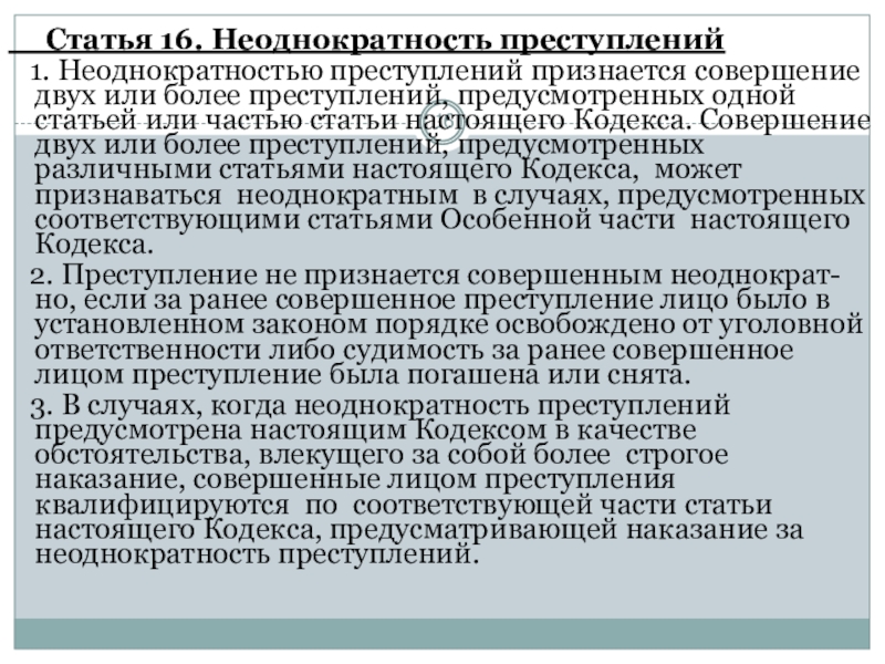 Слайд 16 Статья 16. Неоднократность преступлений