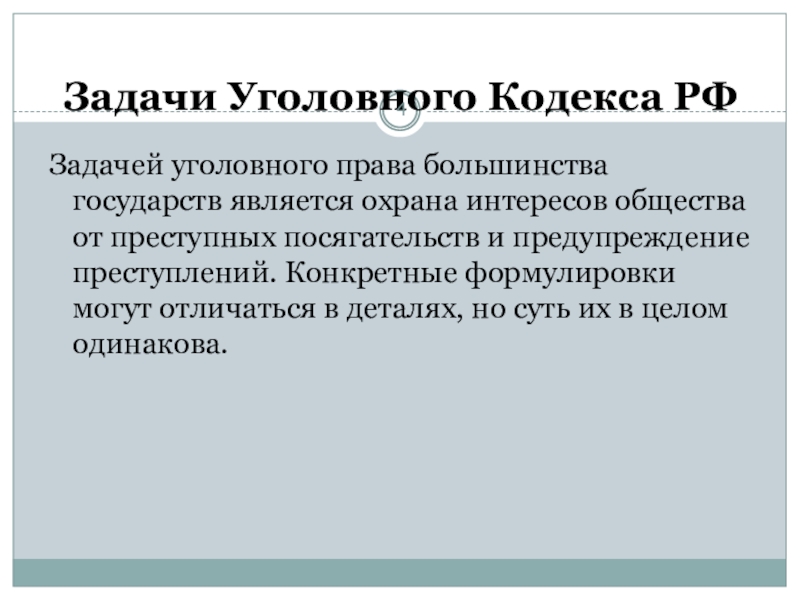 Слайд 4Задачи Уголовного Кодекса РФ