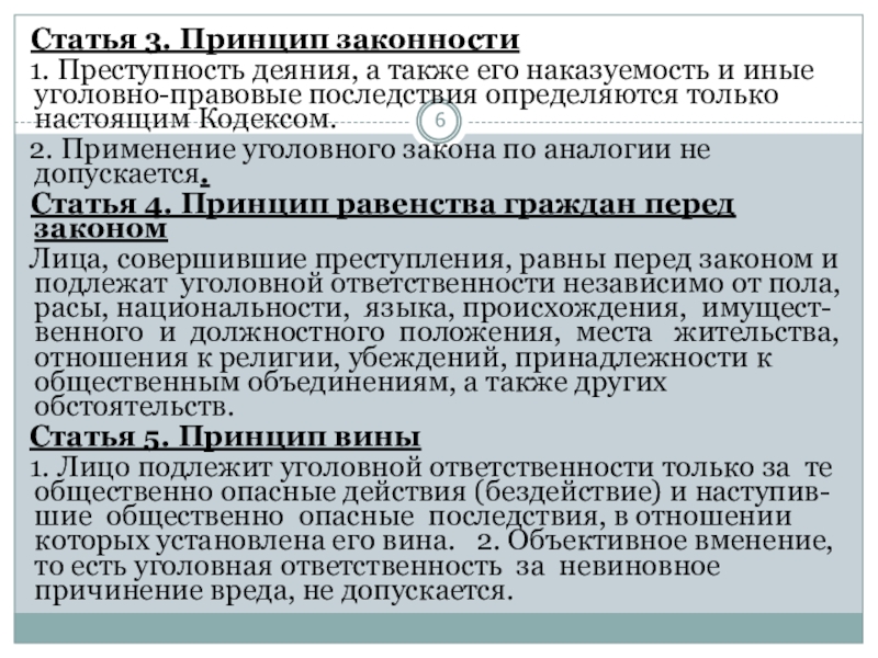 Слайд 6 Статья 3. Принцип законности