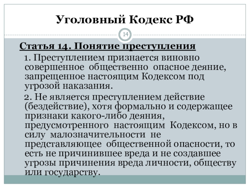 Слайд 14Уголовный Кодекс РФ