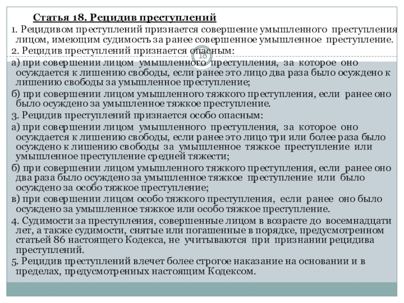 Слайд 18 Статья 18. Рецидив преступлений