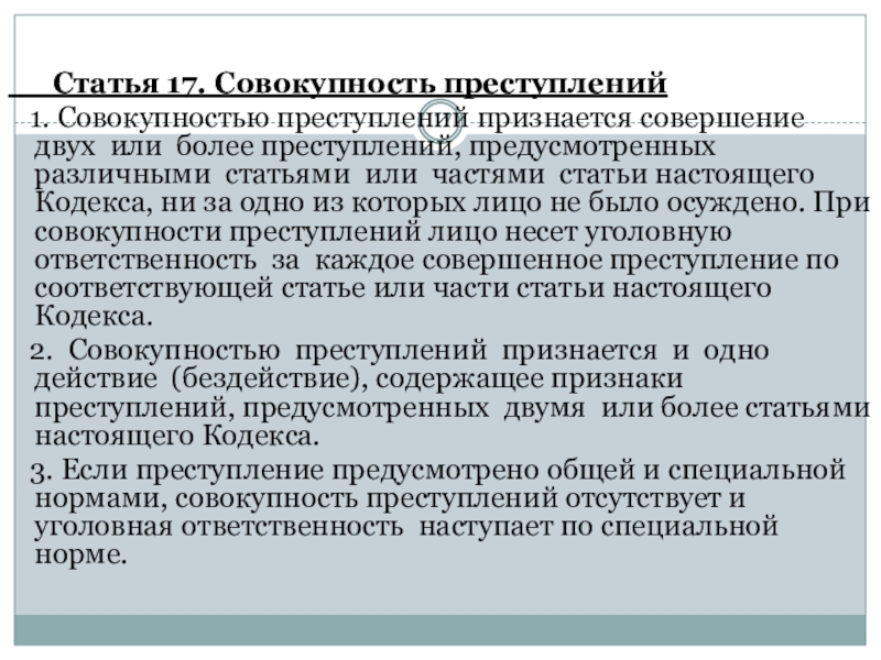 Слайд 17 Статья 17. Совокупность преступлений