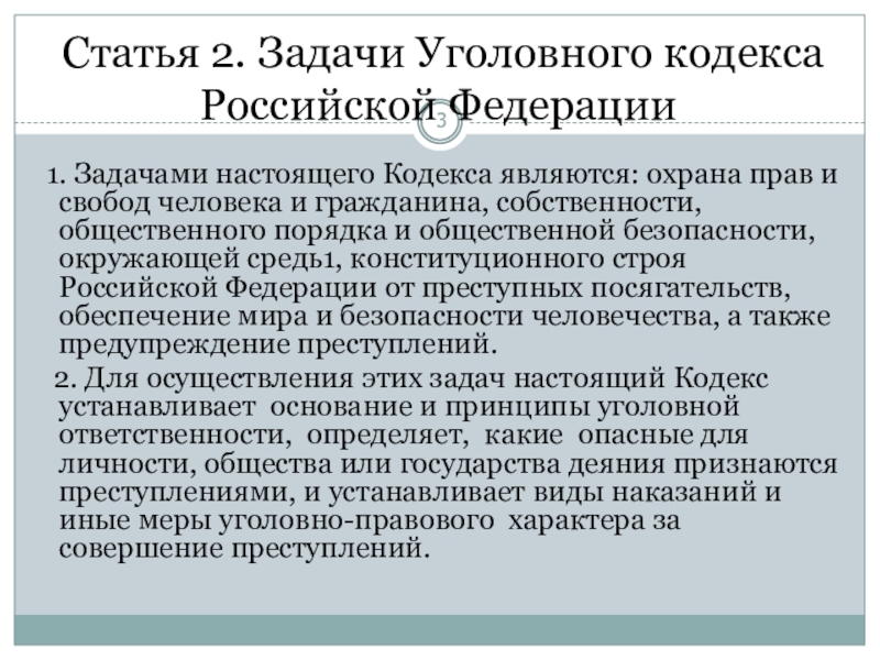 Слайд 3 Статья 2. Задачи Уголовного кодекса Российской Федерации