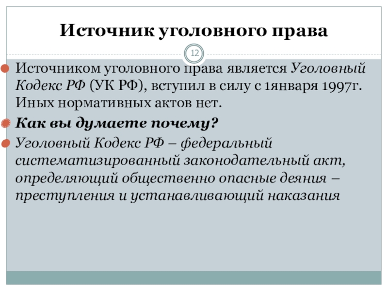 Слайд 12Источник уголовного права