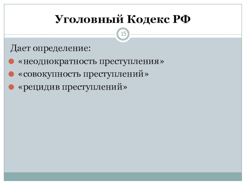 Слайд 15Уголовный Кодекс РФ