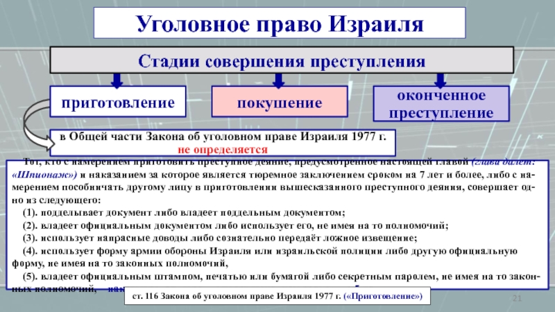 в Общей части Закона об уголовном праве Израиля 1977 г. не определяется