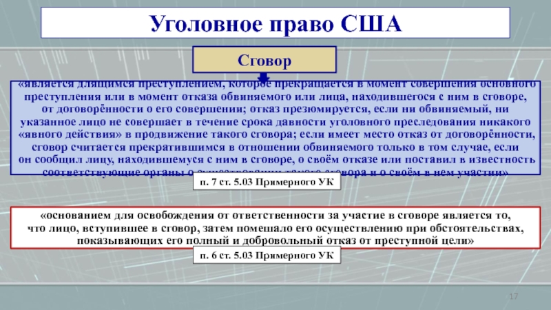 в УК штатов – свои определения сговора и уголовная ответственность за него