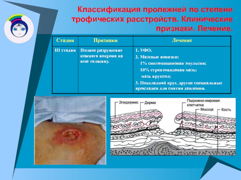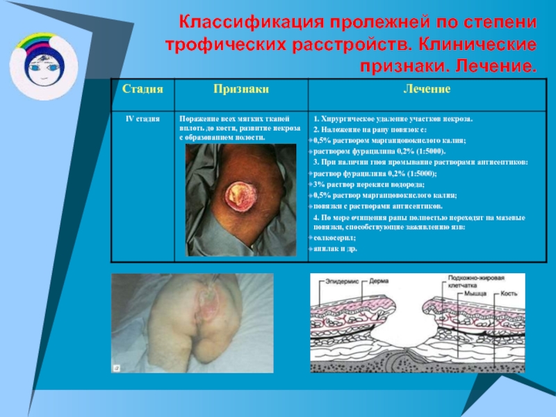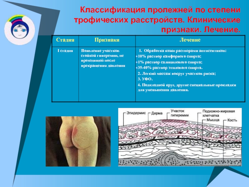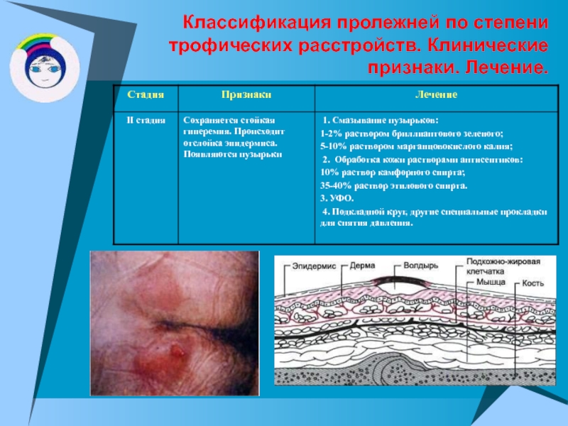 Слайд 18Классификация пролежней по степени трофических расстройств. Клинические признаки. Лечение.