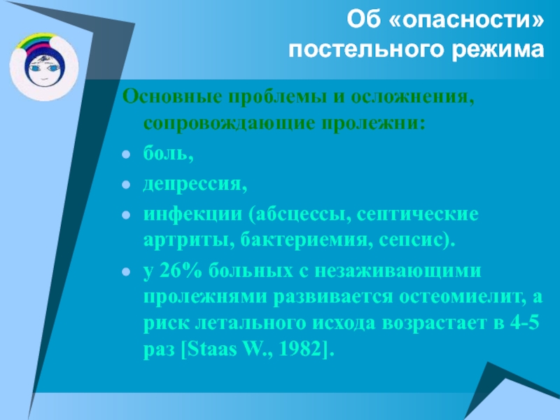 пролежнями развивается остеомиелит, а риск летального исхода возрастает в 4-5 раз [Staas W., 1982].