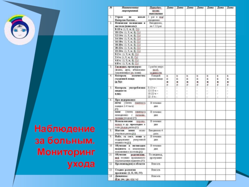 наблюдение за состоянием кожных покровов и правила поддержания умеренной влажности кожи;