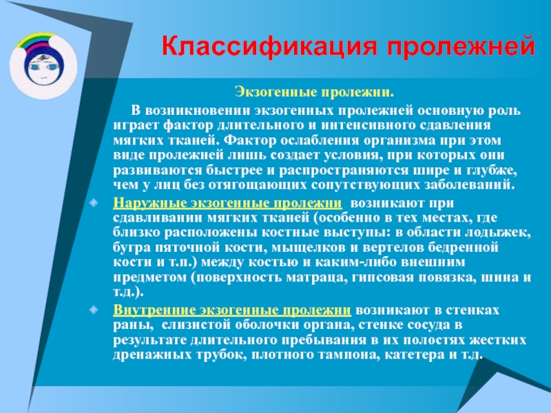 экзогенных пролежней основную роль играет фактор длительного и интенсивного сдавления