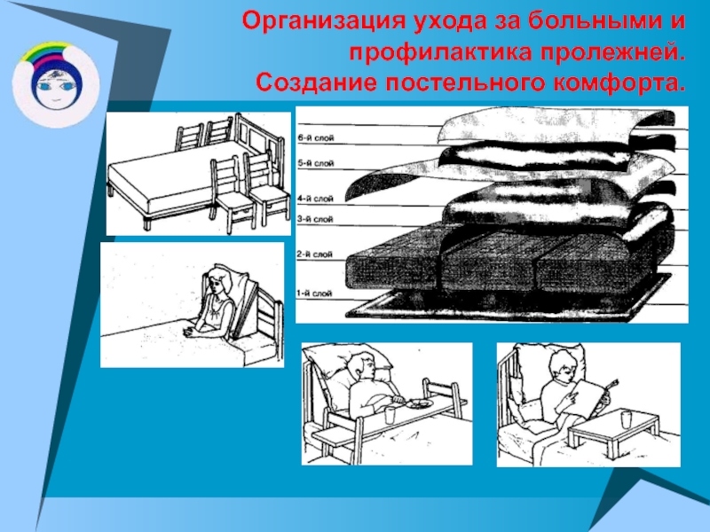 Слайд 22Организация ухода за больными и профилактика пролежней.