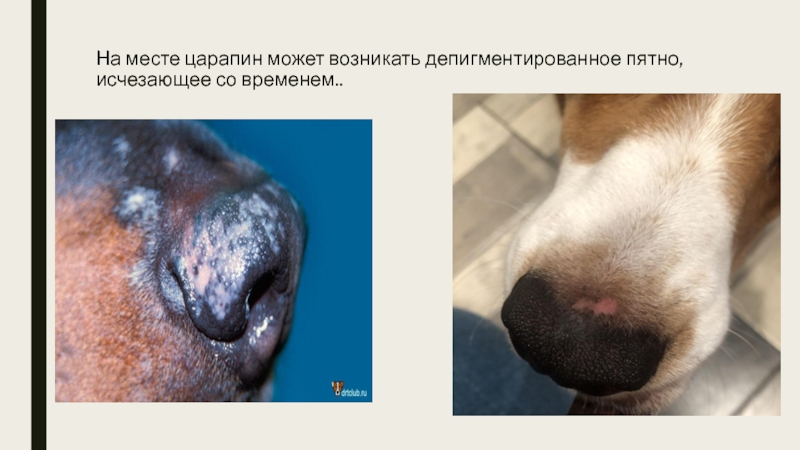 Слайд 5На месте царапин может возникать депигментированное пятно, исчезающее со временем..