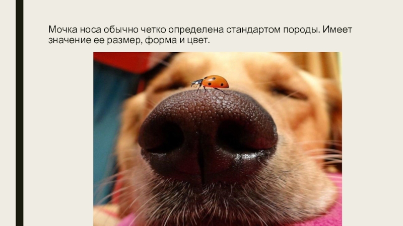 Слайд 4Мочка носа обычно четко определена стандартом породы. Имеет значение ее