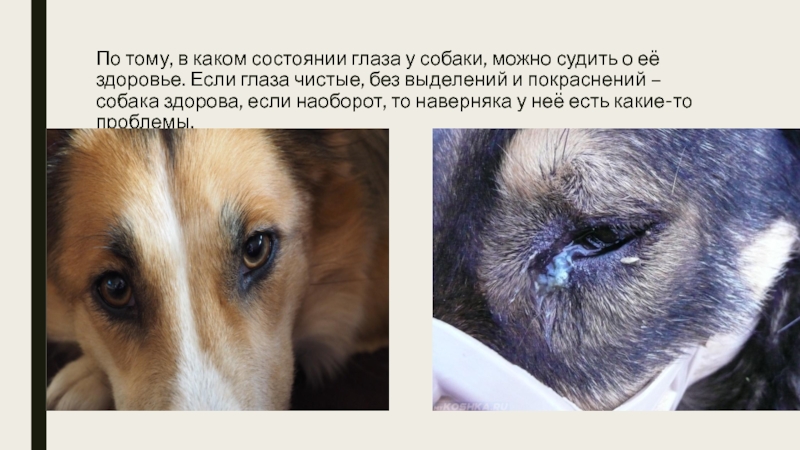 Слайд 9По тому, в каком состоянии глаза у собаки, можно судить