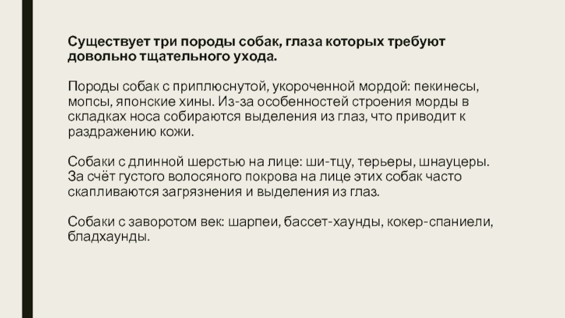 Слайд 10Существует три породы собак, глаза которых требуют довольно тщательного ухода.