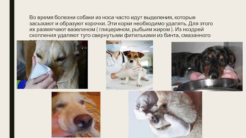 Слайд 7Во время болезни собаки из носа часто идут выделения, которые