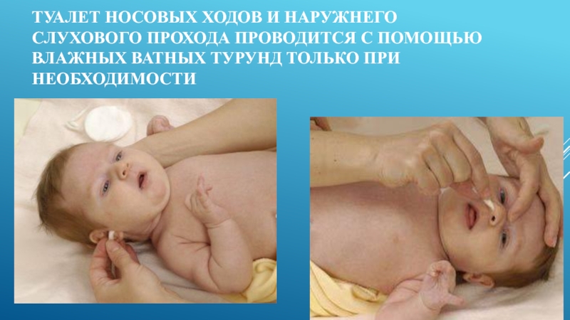 Слайд 5Туалет носовых ходов и наружнего слухового прохода проводится с помощью