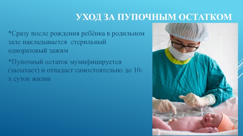 Слайд 9Уход за пупочным остатком