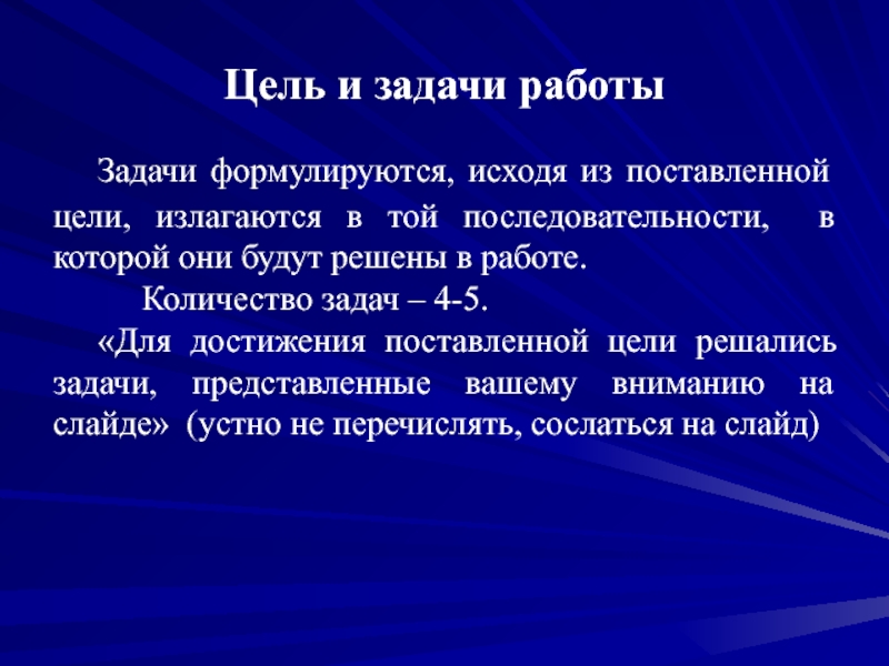 «Для достижения поставленной цели решались задачи, представленные вашему вниманию на слайде» (устно не перечислять, сослаться на слайд)