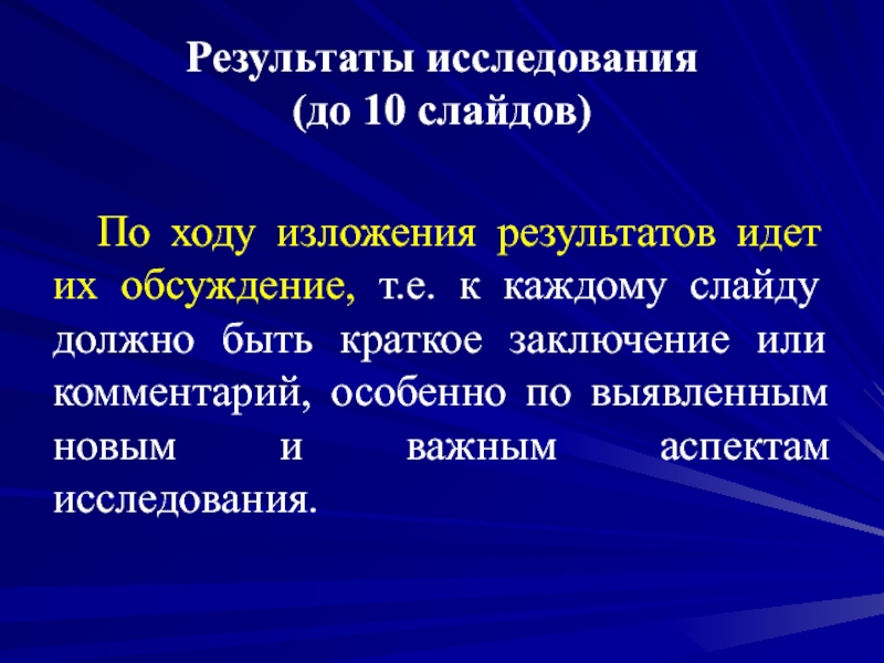 их обсуждение, т.е. к каждому слайду должно быть краткое заключение