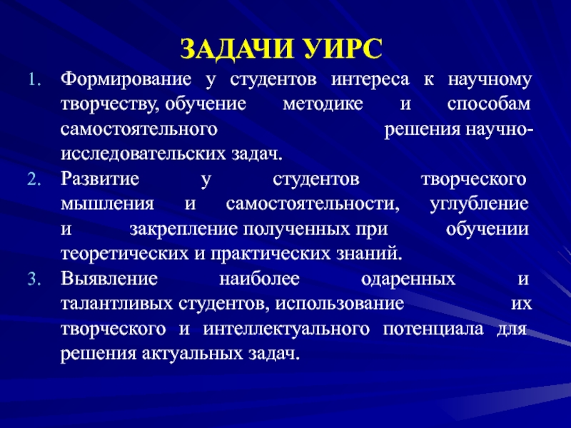 Формирование у студентов интереса к научному творчеству, обучение методике и
