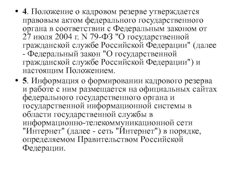 Слайд 3Положение о кадровом резерве федерального государственного органа