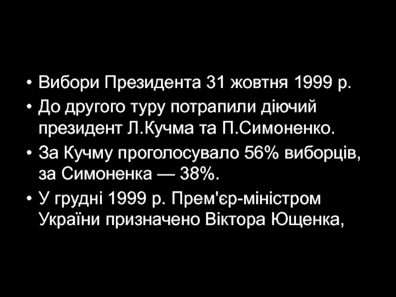Слайд 10Вибори Президента 31 жовтня 1999 р.
