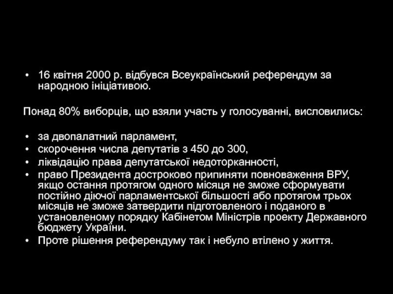 Слайд 1116 квітня 2000 р. відбувся Всеукраїнський референдум за народною ініціативою.