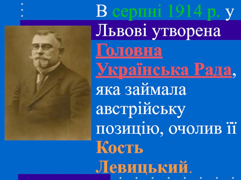 Рада, яка займала австрійську позицію, очолив її Кость Левицький.