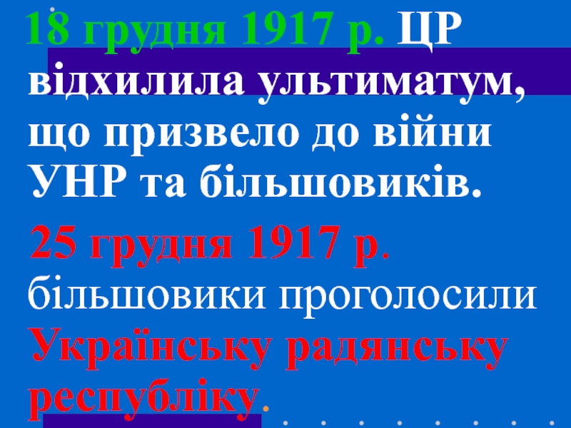 Слайд 34 18 грудня 1917 р. ЦР відхилила ультиматум, що призвело