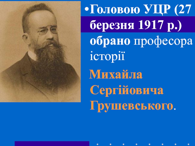 Слайд 22Головою УЦР (27 березня 1917 р.) обрано професора історії