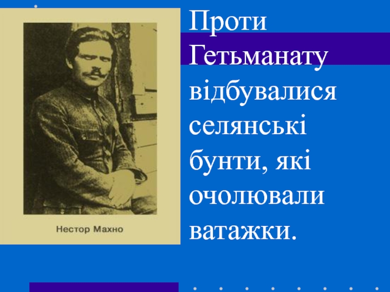 Слайд 50 Проти Гетьманату відбувалися селянські бунти, які очолювали ватажки.